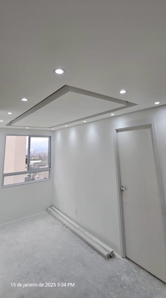 Instalação Rápida e Limpa: A montagem do forro de drywall é rápida e gera menos resíduos comparada a outras técnicas de construção, como o uso de reboco ou alvenaria.