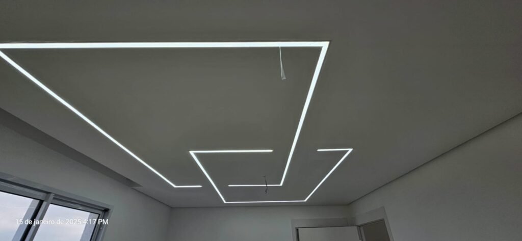 Versatilidade: Pode ser instalado em diferentes formas e designs, incluindo tetos rebaixados, sancas, e detalhes decorativos, proporcionando um visual sofisticado e personalizado ao ambiente.