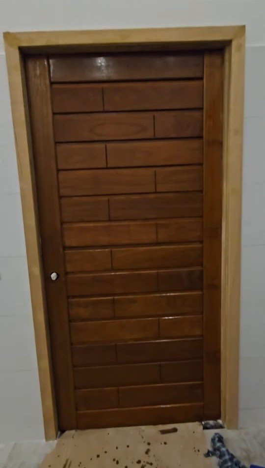 Realizamos pinturas de portas com aplicação de verniz e tintas com brilho, acetinado ou fosco.